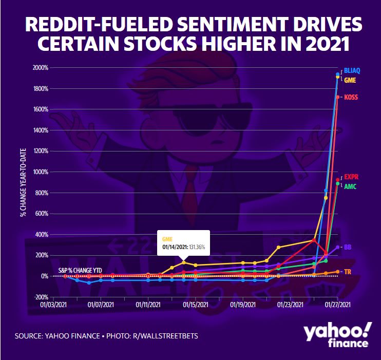 A lot of these traders on WSB are people who lived through the 2008 financial crisis and experienced the hardship of financial loss such as seeing their parents’ home get taken away, etc. This aggressive buying of GameStop and other companies was their way of making a point by creating a short squeeze (this occurs when a stock jumps higher, forcing traders who had shorted the stock, to buy it in order to prevent greater losses) and stating that Wall Street can’t always win and can’t always be bailed out (a lot of the banks were bailed out during the 2008 financial crisis). According to a CNN article, WSB user ssauronn posted “I was in my early teens during the ’08 crisis. When that crisis hit our family, we were able to keep our little house, but we lived off of pancake mix, and powdered milk, and beans and rice for a year.” Melvin Capital, the hedge fund we mentioned previously, lost 30% of $12.5 billion under management this year on a series of short positions, including exposure to GameStop, closed out its position in GameStop this week after taking a huge loss. Melvin Capital ended up getting help from Citadel LLC and Point72 Asset Management, who invested $2 billion and $750 million into the fund, respectively.